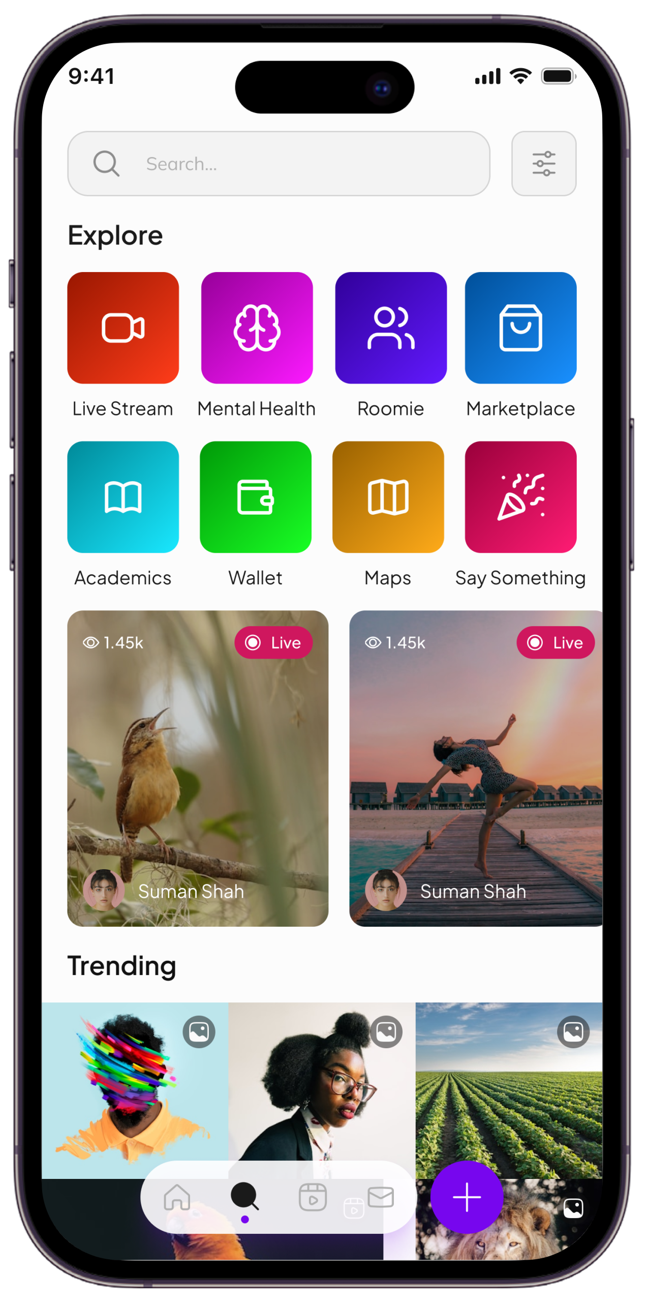 Create, share, and discover campus content through live streams, stories, and student-driven media.